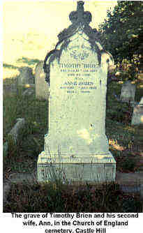 Upon his death on the 15th January 1897, the "Cumberland Argus" dated the 16th January 1897 published his obituary, which read as follows - "It is with deep regret that we have to record the fact that on yesterday (Friday) morning another of the district's well known identities passed away. We refer to the death of Mr Timothy Brien of Seven Hills. The old gentleman has been ailing for a long time and his illness occasioned much concern among a wide circle of friends and has been referred to in the 'Argus'. Mr Brien had reached the advanced age of 83 years and lately his health was breaking up fast. The funeral is arranged for 2 o'clock this afternoon and will move to Castle Hill Church of England Cemetery". (Ref: Cumberland Argus and FruitgrowersAdvocate, 16th January, 1897)